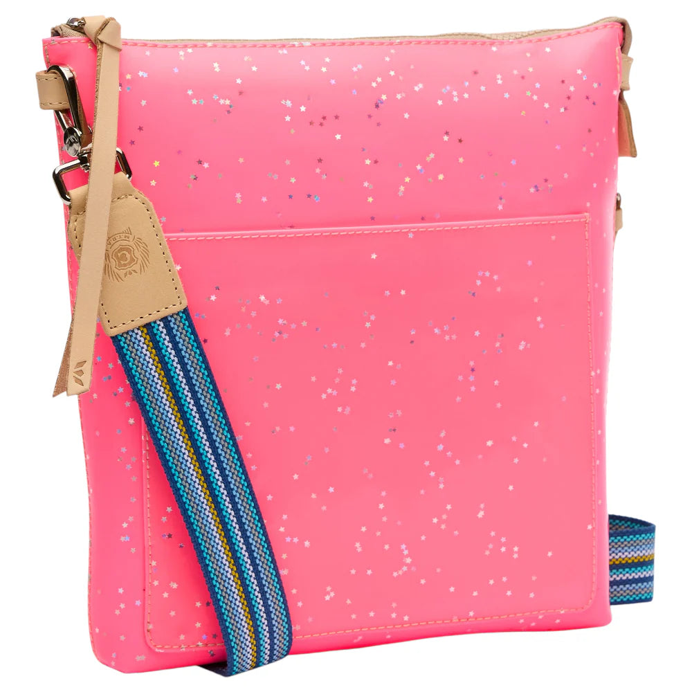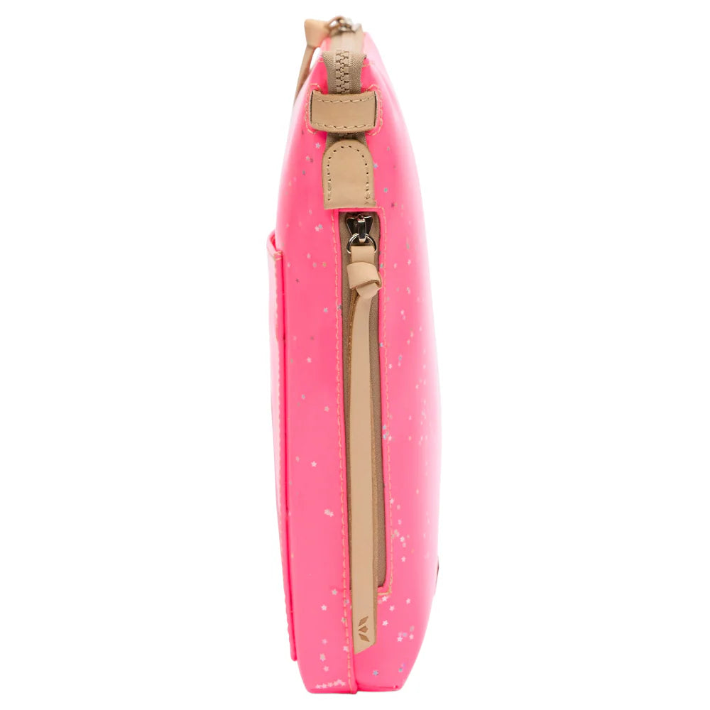 Our new, vertical crossbody has an extra front slip pocket and a side zip pocket to streamline your busy life in style. Zip it up and go!